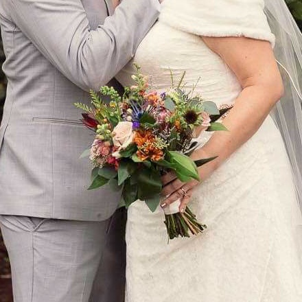 Additionally, I had brought low bowls in months prior for them to use for my featured table flowers- which were to be standing in heavy flower frogs inside the bowls. Instead of this, the flowers were place in chicken wire with pieces of thin scotch tape connecting the wire to the bowl. How they believed that was supposed to stay upright is beyond me- they all fell over before I had even left the shop- and I had to make a hobby lobby stop the morning of my wedding to buy rocks to keep the flowers upright for the reception. I won’t even go into how different this arrangement looked compared to what I had sent inspo photos of but rest assured- night and day.