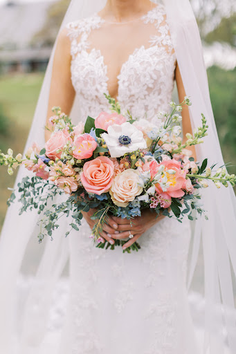 I had told them minimal pink and walked in to what looked like an “it’s a girl!” baby shower flowers. I asked the lady (as Brian wasn’t there) to take all the pink flowers out of my bouquet (except one) and replace with white like I had asked for. She grabbed a print off that Brian had created for me and she said “this looks pink to me” which she was correct, it was pink, but if she had seen/been on the emails she would have known my response to Brian of the pdf arrangement was I said “way less pink”. She did change my pink flowers with white roses- which I accepted as there were no alternatives- but was funny considering I had also said no roses in my emails.