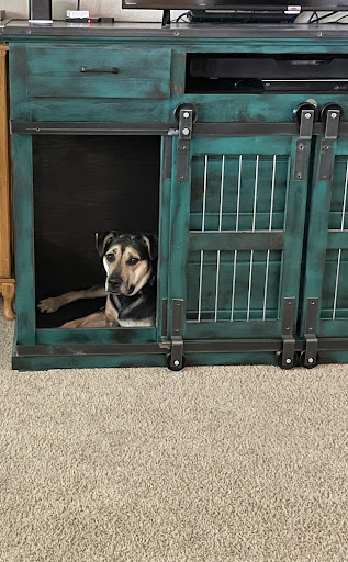I had to reach back out to Terri for help this year because I had bought my brand new puppy Ariel a TV console kennel (I attached a picture of a TV console kennel that WAS NOT done by Kennel & Crate - I made the mistake of being in a hurry and going with someone local so I would not have to wait for shipping - The materials that were used were cheap and flimsy and it was put together in a hurry with many details out of place - interior not sanded or painted, and it was NOT sturdy or safe for my dog) that was a complete disaster. You can see the barn door fell off. There were screws that actually poked out on the inside that were completely unsafe, and the bars would pop off if they were barely laid against by Ariel.