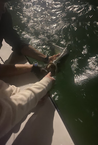 Our first trip was a backcountry excursion that took us through the mangrove shallows. We caught mangrove snapper and attempted to catch tarpon. Once the sun went down, we moved closer to the lights from the bridges and again went after tarpon. We were able to hook and fight several, but all were able to eventually slip our hook!