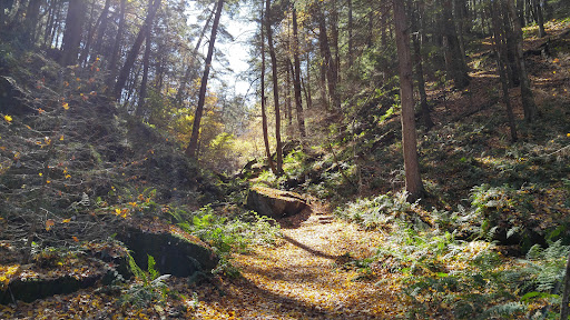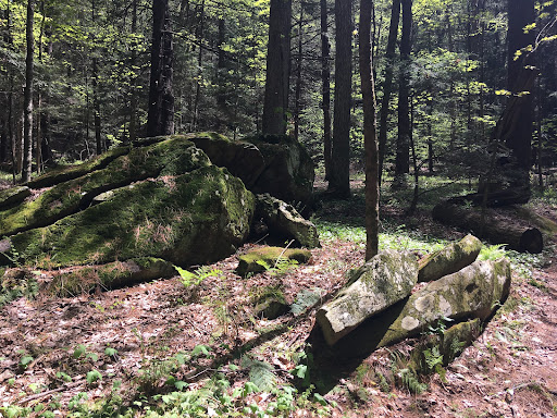 One of the jewels of the Berkshires, Ice Glen is a trail in Stockbridge, Massachusetts. It's been a landmark for hundreds of years, and is even mentioned in Melville's Moby Dick ("The wood was green as mosses of the Icy Glen"). It features, well a glen of course, but also rock formations, caves, and sure enough, ice well into the summer under its rocks. To visit, park at the dead end of Park Street. Walk across the bridge. Follow the trail to Ice Glen. Exit on Ice Glen Road (gorgeous vistas!). Take a right onto Route 7 and a right onto Park St. to return to your car. The entire walk took me...