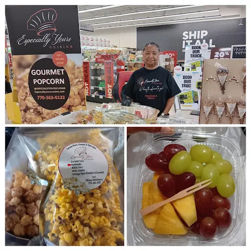 Read moreI had the pleasure of meeting Queen Chef Tiffinee while out running errands in the Stonecrest area. Her beautiful vending display caught my eye! I purchased (and thoroughly enjoyed) the tuna salad, fruit mix, chicago-style popcorn, chocolate almonds, and buttered popcorn. 🍍🍇🍿