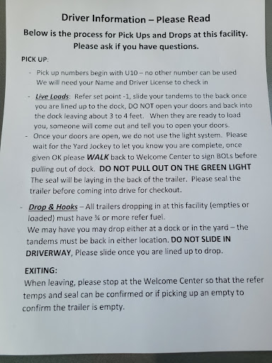 Read moreWORSTS PLACE EVER . AVOID AT ALL COST I had an drop and hook here with drop dead time of 2 pm. Called at noon to check on load she said she had no empty trailer , I offered to bring my empty and she said great will put you in door right away and get you on way . Arrived at 1:45 and was put in door sat for 3 hrs then told to move to a different door and open my doors , after 3 more hours of my reefer running non stop I call and of course it’s been shift change and the new lady is rude and tells me I was late for my 2 pm appt which is why I have not been loaded . I explain that a DROP AND HOOK and I WAS NOT LATE . That I could have sat at the TA until it was ready and not started my clock to waste in your dock . She then tells me they are running behind and it could be 2 more hrs or 6 .. they do not care...