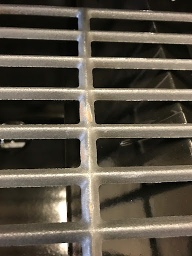 Yesterday I purchased some nice food to grill and headed over to Home Depot to pick up my order. I wheeled the grill outside in the sunlight all ready to inspect it and place in my vehicle. Without even touching the grate, pieces of black material started to flake off and show rust underneath. In addition, there was a large amount of dried blood that I came into contact with (presumable from assembly). I went right back inside the store to ask for just the grate to be replaced, the blood to be properly removed and for a side end to be removed for easier storage in my car.