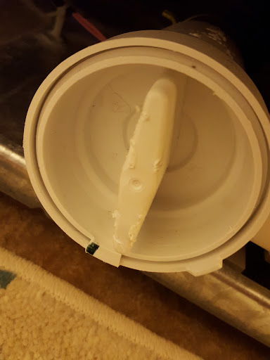 He narrowed down the problem with the washing machine to one of two parts. He recommended that I order both and try them to see which it was. After installing both new parts, the problem persisted. I also discovered that his son was wrenching on the drain plug and may have cross threaded it. (see picture)