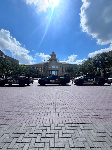 City vehicles were parked in front of the impressive city hall building. My favorite was the S.W.A.T. vehicle. Officer Clarite, pictured with his back to us, told me it was used last year during the heavy floods of Hurricane Harvey.