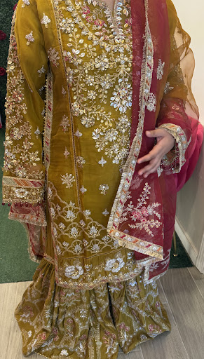 Read moreI canât express how happy and thankful I am for this dress! I was in such a rush trying to find the perfect outfit for my Mayoun, especially since I was leaving for Pakistan the very same day. I honestly didnât think I would find something in time, but Iâm so glad I came to Nasreen Aunty. She welcomed me with such warmth and kindness, and in just one visit, helped me find the most beautiful dress.The moment I tried it on, I knew it was the one. The colors were vibrant and traditionalâexactly what I imagined for my Mayounâand the detailing in the work was just stunning. Every inch of the dress felt special and thoughtfully made. It truly made me feel like a bride, and I couldnât stop smiling. Nasreen Aunty really took the time to understand what I was looking for, and her sweet and caring nature made the whole experience so much easier and stress-free. Iâm beyond grateful for her help and eye for style. This dress made my day so memorable, and I received so many compliments on it too! Thank you again for everythingâthe dress, the service, and the love. Iâll definitely be coming back for all my...