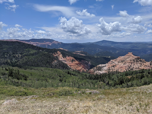 It is now June 27, and temperatures on this 10k ft. plateau are in the low 70's daily, and go down to only high 50's at night. That said, here are many open spots for trailers, and lighter off road rigs with small trailers in tow, or 4wheel vehicles in general. The views are phenominal! There are so many private camp spaces along this road (the road can get a big steep, it is dirt, and in places rutted, and note that the 2nd half of this place it would be good to have a high clearance vehicle to access). There are some completely vacant view lots here with Cedar Breaks as the backdrop, and mountains, which are (for me) very attractive. Ammenities (like shopping goods) are still about 10 miles away (Duck Creek Village) or 20 for Cedar City). I think I saw an 18 day limit for the sites. But some of the lower sites can take a larger motorhome easily, with ATV trailers. I know because I followed in a couple of them. If you camp, just know that this spot can get WEATHER pretty unpredictably, kind of like the Rockies. But for my money, this is some of the best (and in many cases private) camp...