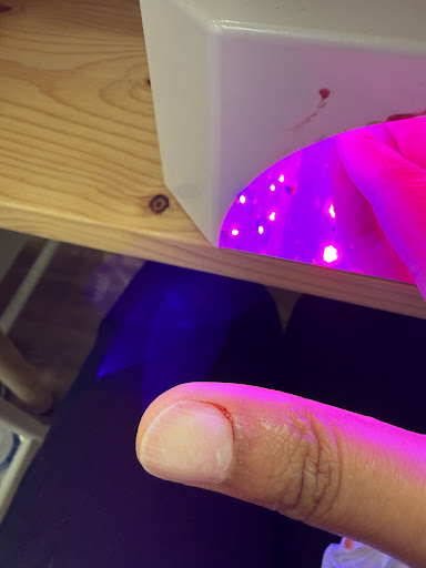 Also side note, I noticed that my nail tech didn't wear gloves, but the other ones did have it, and the nail oil they used at the end, the applicator (that was in the nail oil bottle) was put on directly on my nails/fingers. Who knows how many people had that put on as well. Even in skincare, you'd know that that can lead to mold.
