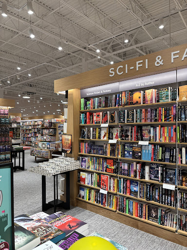 Read moreI like this Barnes and Noble the best in my area.. I'll drive the extra ten mins to go here. There's no cafe, but that doesn't bother me because they have a wider selection of books as a result. I like the way the books are displayed, I feel like they're easier to find and grab you because they are facing outwards with the cover displayed. The employees always seem chipper and are always asking me if I need/want help finding anything. The store seems very fresh and open with the layout. The only thing I'd recommend is more chairs...