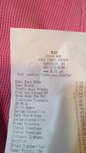 The freshness of ALDI is the same as Super One, but the advantage that ALDI has is that it's half the price. The only thing I don't get from ALDI consistently is the meat: the hamburger is ho-hum, the steaks are average, and the chicken isn't great. We do get the fish from here, however, which is always good and priced competitively. I also will buy the brisket and the tri-tip here because it goes good on the smoker.