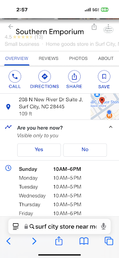 The store is a little pricey, but you might expect that at a tourist type store. We were hoping to get a little decor to do some projects with our kids; we live very close to Surf City. Unfortunately, the sales clerk made this experience difficult. I understand there are many, many breakable things in the store. She followed my son around the store (I was always near him, but I gave him some distance to look at things). Whenever my son would reach out for something she would say, “Don’t touch that!”