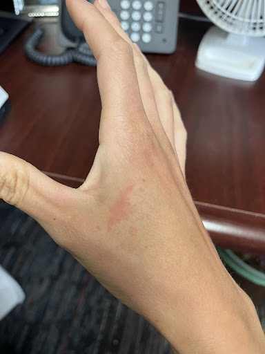 Potential bugs or irritant in clothing. I took my stepdaughter here to get a hoodie last minute. We looked through lots of the sweatshirts until we found one without a stain and in her size. A lot of the items had brownish stains on them, almost like what you'd expect from bedbugs, but some stains were too big to be caused by that. We overheard other customers talking about this as well. The more concerning part is that my stepdaughter said when she was looking through the clothes, something bit or scratched her and she had two small, but relatively wide and deep (compared to say, a paper cut) scratch marks on her hand. After we left the store, I felt a bit itchy and noticed I had two (what appeared to be) bite marks clustered on my hand as well. Today, about a week later, the spots on my hand have faded but the area is red and swollen. I'm not sure if it's bugs or spiders in the clothing or cheap fibers or glitter that are coming off the clothes and getting embedded in our skin or what. We were mostly looking in the outdoor clothing, that's where my stepdaughter said she felt the scratch. We did end up buying a hoodie but after we both started itching and noticed the marks after leaving the store, we threw it away in the outdoor trash...