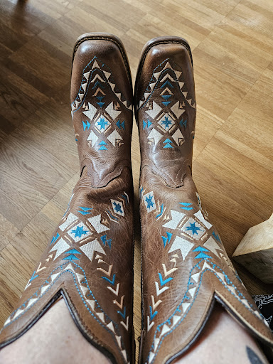 Enjoyed our visit today to pick out some cowboy boots and jeans. They have a large selection of boots (almost too large) and very attentive team members who regularly checked on us and helped us with fitting and bringing shoes from the back. They were keen to provide guidance on how to fit the shoes and did not mind going to check for additional sizes, especially since I had to size 1/2 to a whole size from my regular size to find the right fit.