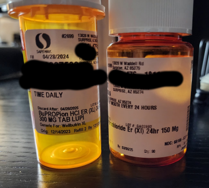 For context, here are the bottles of Burpropion that both my Doctor and the Nurse Practitioner gave me. I blotted out their names and my address ofcourse.