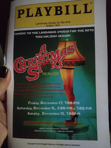 I took my family to see "A Christmas Story" December 14th at the 2 o'clock show. The play was really fun; plenty of laughs and an interesting spin on the movie I grew up with in the '90s. The seats I reserved were tagged with our names, but were mirror opposite from the seats I purchased using the seating chart online. Keep that in mind when reserving seats, as it is not laid out the same. The snacks at intermission are homemade cookies, cupcakes, popcorn, etc and by donation. They weren't bad. This show had everything; singing, dancing and a beautiful story. They put their ALL into this play and it shows. The only complaint I had at all is that the main character is very hard to understand. It could be a sound issue but maybe he is not speaking loudly enough. Regardless, we all enjoyed ourselves and would definitely go again. Visiting this theatre directly helps fund Art in this...