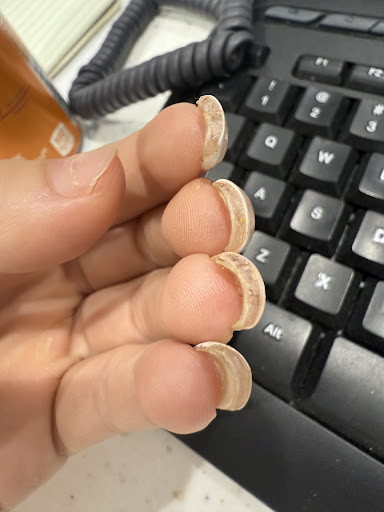 I went yesterday to get a full set done. Wanted to try this place since it’s closer to home. Staff were all very friendly. My nails though, I’m very unhappy with. First to start, The guy kept rubbing the regular mail file against my skin on my fingers causing it to burn. I had to pull my hand away multiple times. (One picture shows one of my fingers where he rubbed the file on my skin) He also burned the top part of my nail On two fingers with the electric nail file. Then after completion I realize that none of my nails are the same size on each hand. Now I understand a little bit longer or shorter but there is a pretty big difference in sizes of them. (Thumbs pictured for reference) Also, most of them are lumpy and not shaped right at all! (Tried to show a pic but it’s hard with the glitter polish) I’m extremely disappointed, and very upset that I wasted money on these to not only look terrible but to be hurt while Doing it. Very...