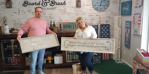 Read moreThis is a really fun place to go for anyone wanting to create something fun for themselves or gifts for others. Experienced staff help you through the process to make beautiful wall plaques and signs. I chose the monogram sign and it looks amazing in my dining room. I've had people ask where I had it made at and I told them I made it at brush and board and are very surprised at how nice it looks. I went as a Christmas party and am looking forward to going again with a friend or two or even my 11 year old daughter. Great experience and...