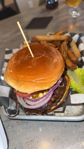 Read moreWe really wanted to give this place a fair chance because we live close and want to support the locally owned places in our area. Starting with the good. The bar tender was attentive and friendly. She answered all of our questions. Our waitress, Kimberley, was also really great. But that is where it ended. The beer menu is only by QR code which made it difficult for some in our group. The wall menu was placed so low that people sitting at the tables against the wall blocked the bottom options. They blew a keg that a couple in our group were drinking so there was a delay. The bar tender offered other options until it could be changed. (It was the beer that most closely tasted like budlight) We were texted that our table was ready in about 35 minutes of the expected 40. We tried to order the beer that the keg was being changed, but the waitress told us that beer was 86, meaning off the menu for the night. Then, when ordering food, we were told they ran out of pub chips (it was 7pm) with no replacement option but could have fries for the $2 upcharge. We opted for fries. The food took a while to come out but it was busy, so no big deal. The fries were cold, even soggy, but the sandwiches were really hot. I asked for no bang bang sauce on my chicken sandwich but had to send it back to swap out the bun, which had the the spicy sauce on it. It was a swift return and otherwise tasty. My husband ordered a different chicken sandwich but thought it was tasteless. He thought the slaw and aioli on it could have been more flavorful.The burger was reported to be average. The restaurant is visually appealing on the inside but one of the TVs in the dining area wasn't working. Additionally, because of so many hard surfaces, it was quite noisy. Finally, as we were leaving several children, ages 5 to 7ish were running amok on the patio, standing on tables, and crawling under chairs. We saw no supervision. There were no guests on the patio so no bother. However, it felt like a bold move to just turn kids loose out there. Right now, I simply can't give a good review. However, we will try it again and I will edit...