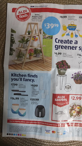 Ā Ā Ā Read moreThis store has everything according to the seasons! The food prices are great! The store is strategically located near the college campus and around popular other prepared food places! The store is kept clean. The workers are personable and check out is fast! Great parking! The stock selection was great. The food is designed for quick consumption which allows for lower prices. I love š their organic selections. Since shopping at Aldiās, I have experienced a new trend for trying different brands and types of foods and products. Yes! Products from fans to heaters! Kids toys to candles! Come and see for yourselves. Canāt beat the pricing. Bring a quarter to use the shopping carts, (you get it back once you return the cart). Bring your own shopping bags, or you can purchase here this help defray the...