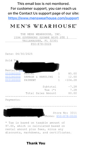 Read moreHorrible experience. The backs of the vests for a wedding did not match (see pic below). This is for a beach wedding so they are only wearing shirts and vests and not jackets so the backs matter. After the runaround they agreed to order more so that they matched but could not guarantee that they would match. The new ones they ordered matched. Thank God. We went and pick up the new ones and they had ordered an XXL instead of a 2X which is the size that they were supposed to be. We had already been over there five times and live an hour and a half away. The new vest did not fit and the only option was for me to send it back, wait for it to come back to the store and then they would resend the other one. I specifically sent a message to the manager telling her the correct size (2X) because she said I would have to tell her what size we need even though she had the size in her system. She ordered an XXL. So when I asked her what the difference between a 2X and an XXL, she told me the 2X was bigger. I asked her why she didn’t order the 2X like I asked her to (and the size he previously had) and she said that wasn’t the size they had in their system. She previously told me she didn’t know which size belonged to which person and that’s why she needed the size. She was ordering two vest so how did she know which size was the one that she needed to order the correct back on? Due to this being the managers fault for ordering the wrong size, they should go ahead and send the vest with a prepaid box for me to send the other one back. The wedding is in “three” weeks. Poor management. Don’t buy from them. Another option provided by corporate was that I can go online and buy another vest. You will end up spending a lot more money if you buy with this company.