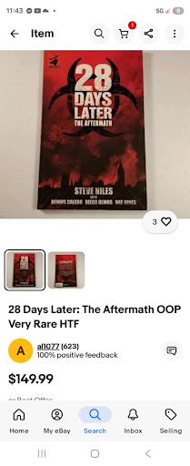 I asked him for a price, and he went on to the computer to look for the price of this 28 Days Later magazine. After looking, he told me the price of the magazine was going to be $130.00 or more. I told him no thank you, and the gentleman working for M&M seemed pretty upset, maybe thinking I was wasting his time. He tossed the magazine behind him and said it shouldn't have been out there anyway.