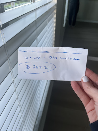 Hope continued with me and told me she’d write down numbers as to what a membership would look like. This time around, she included first and last month deposit, including the enrollment, which took me by surprise.