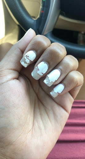 If youâre like me & like regular nail polish instead of gel DO NOT WASTE YOUR MONEY OR TIME. My nail polish didnât even last a day. I expected it to last at least a few days to a week b/c theyâre professionals. Wrong. It was completely shredded apart & didnât even look like I went to a nail salon at all. I was very upset b/c I needed it done for graduation. I went back for them to do my nails again, & their defense was that they warned me reg nail polish doesnât last, but failed to mention in will start chipping apart within a few hrs & they reluctantly did it. Before starting she poured a lot of acetone into the polish she was using. Their polish is so diluted with acetone And thatâs what they use on customers hands & call themselves professionals. Iâve never experienced such low quality product before at a nail salon, I just wanted to get out of there. The 2nd pic is the 2nd time getting my nails done & started chipping couple hrs later of course. Unfortunately I only needed it to last for a photo shootđđ˝Iâve had dollar store nail polish last way...