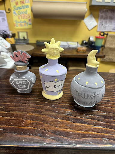 Read moreIt was me & my boyfriend’s first time here & we had a wonderful experience! I would suggest booking a reservation just to ensure you have a table to sit at! We were luck we walked in and saw another couple leave & took their table. All the staff were very friendly, helpful & thoughtful! They seemed around college level age, same as me & my boyfriend so it was super easy to talk to them & it made us feel comfortable. It’s a very simple casual vibe. There’s lots of pottery options to choose from (even bongs & pipes.) They had figurines, mugs, bowls, plates, candle holders, ring holders, dragon figurines & so much more. *Make sure to look around the whole place & through all the shelves on the walls! They had a good selection of paint colors with unlimited refills & unlimited amount of colors to choose. They had stencils, stamps, sand paper, rulers & just about every material you can think of! They had 3-4 booths with blow driers. They have a lot of sale items that are very cheap near the door & near the booth. They also have a big menu of coffee, smoothies, lattes, matcha, juices, Frappuccinos, ice cream, floats, etc. they had a few baked goods. We tried the Frappuccino and it tasted great! A little too sugary but it was good! We spent 3-4 hours here because of how nice the service was & how much we where...
