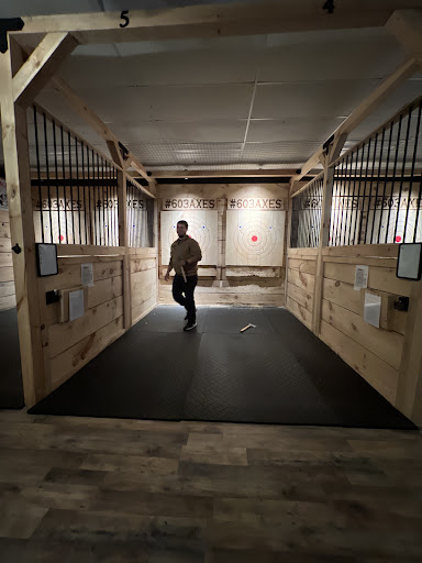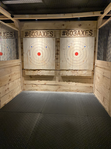 Read moreWent to 603 Axes today as a Sunday afternoon date with my husband. Throwing axes is harder than it looks! Regardless, we both had fun throwing not only axes but other sharp things that you see in those action movies. LOL. Our host, T.J. was great. He put some favorite classic rock songs on for us baby boomers, and was super helpful with instruction and encouragement. We both sipped on some hard cider and ordered a delicious burger and cowboy beans. He talked about an upcoming ladies night and I am in! I highly recommend this...