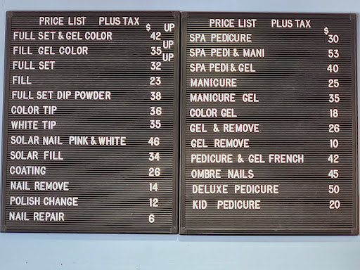 Read moreI would recommend making an appointment. I went on walk in and waited around 4 hours, but I had nothing else to do so I didn’t mind lol. She was the only one working so I understood why. I got a full set of acrylic and my sister got her nails just painted and for both of us it was 53$. One of the gel polish on my sister Peeled off the day after but mine are fine. Minor imperfections on my nails. I have ocd so I noticed but I doubt someone else would have. The place is nice, clean and she was friendly. Would be 5 stars but my ocd was bothered by the imperfections lol definitely will be...