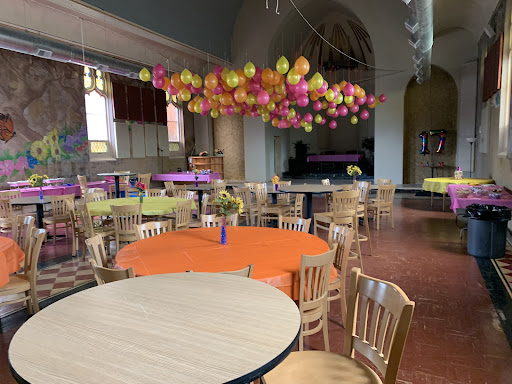 Bathrooms, full commercial kitchen, high vaulted ceilings, built-in sound system that is spectacular (and that’s coming from a recording/performing musician and audio-tech) and it’s just freaking cool. You can host anything there, with special permission = have alcohol at your event, they have additional accommodations and booking if you need to stay overnight including individual tri-fold mattresses with sheets, blankets, pillows and pillow cases and even tents to have set up indoors for privacy. Separate bathrooms and even 2 different showers in the building.