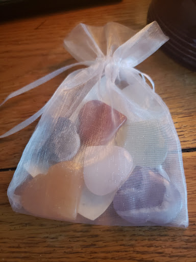 I love that there are little explanations of the tumbled crystals that you can take so that you can not only remember what they are, but also learn about/refer back to their intention!