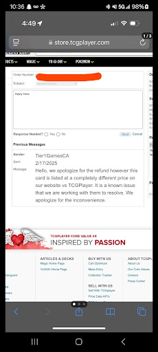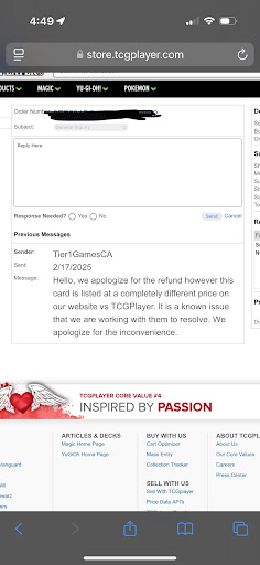 I was getting ready to buy a set of tarmogoyfs which they had in stock and even was getting ready to drop money yet they continue to charge 10$ above tcg equal card condition value. That's 40$ in value which is a playset of thougtseize or something else.