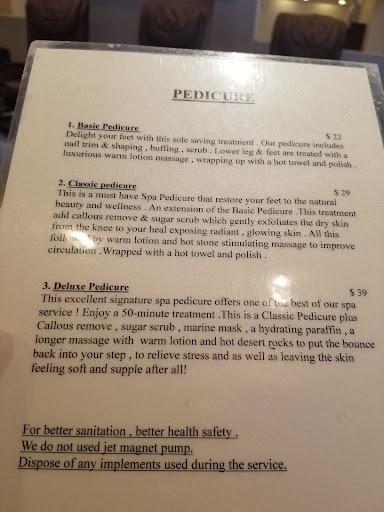 Went today to get a mani with my 17 year old daughter. This has to be the worst experience we have ever had. The ladies doing our nails were very rude and unprofessional. The lady said something about the light with her thick accent. My daughter had to ask her what she meant. The lady became very frustrated very fast. She started speaking to the lady doing my nails which was next to her. After that both ladies had bad attitudes. The lady doing my nails started working on my flowers on my ring finger. She did dot flowers which looked like a two year old had done them. I asked for her to redo it. Her attitude was rigid and I no longer wanted a flower I just wanted to leave. She left cotton ball in the wet nail polish. When I told her she said no it was fine and to just go get my eye brows waxed. I said no its not fine and she replied that she would fix it when I was done with my eyebrows. I went to get my eyebrows done and she messed up my eyebrows! On the top of my right eyebrow there is now a chunk of hair missing! I don't know if she did it out of malice or just having a bad attitude. I would not recommend this...