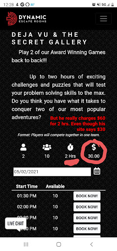 So the website says that you can do a double feature which is 2 games 2 hrs and $30. When we tried to book for my daughter's birthday (6 of us in total) it came out to $380 đ˛ so I called the business thinking maybe they are having technical difficulties. When I called in I asked to speak with a manager and the man on the phone said he was the owner. So I explained what had happened and he said "thanks for bringing it to my attention but it's $30 per person per game." I told him that that was not what the site was advertising because really if you were going to pay the $30 per game no matter what, then why do a double feature? Why not just pick 2 games you want to play? It's the same price, except when you're looking on the page. I asked if he was going to honor what his page said (seeing as how it's advertised as a double feature with 2hrs of game play for $30. No "per person" attached anywhere.) He said no. And for probably the 10th time said "thanks for bringing it to my attention." Sounds like terrible business practices and false advertising. Anything to get people through the door. Disgusting.