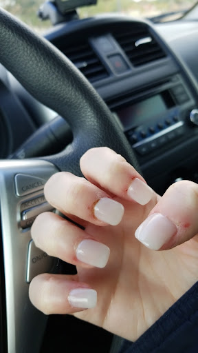 Read moreCame here by recommendation of a friend and I'm sorry girl but I'm not coming back. I came in for a full set and a pedicure. First, they don't use liners in the pedicure baths, which is gross. Sure the water is blue so they may use some antifungal chemicals but a liner definitely makes me more comfortable. Second, the tech who did my full set was very rough and cut me multiple times - to the point of bleeding A LOT. Then she continued to use the same drill filing tool with my blood on it and splattered blood everywhere. I didn't notice if she put it back with the other drill heads when she was finished but she certainly didn't make it look like she intended to clean it. On top of that my nails look horrid. Uneven, chunky, messy cuticles, etc. Normally I'll have them fine tune the nails until they look how I want but I honestly just wanted her to finish without further incident so I could leave. I'm sad that I paid money for these and just praying I don't get some kind of infection. Some positive notes were that they give you a bottle of water and that they play something other than news or cooking shows on the TV....