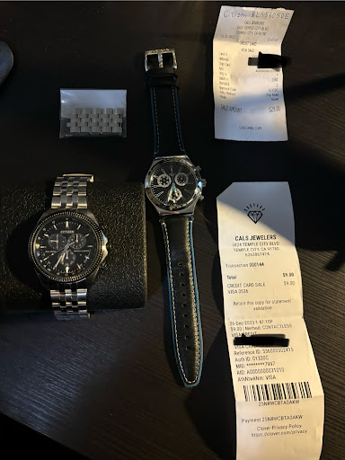 I feel really satisfy for the service in here. I did a resizing service in here 2 years ago for my Citizen watch and switched my battery for 2 other watches that were only $29 (no additional tax). After 2 years, the battery is not working and the price only grows up from $7 to $9. Considering the significant inflation, this is a really friendly price. What I feel satisfy the most is not just the affordable price, but the passion from the owner. He looks really knowledgeable about watches and is willing to spend time to assist your need. For the resizing service, he is more than happy to adjust the right size for you after a while, care whether you feel comfortable on your wrist, instead of asking you to pay for another resizing fee. You can see a little plastic bag to store your chain. My watch is not working after switching battery for the first time. Then the owner try one more time when he saw me little disappointed of it. It is working on the second time and he even helps me to clean up the scratch for my plastic mirror. Can not say more thank you than that and makes my date. His wife is also welcoming for all customers and they look really happy for running...