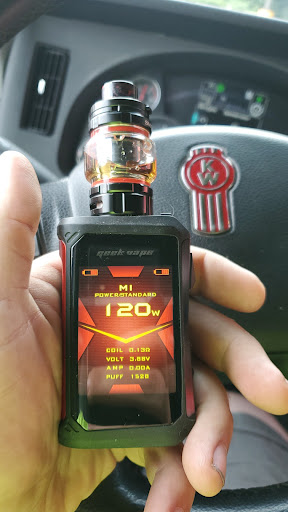 Great lil Vape Shop. It was a calm environment, clean, and the staff was nice. The gentleman I dealt with engaged in the conversation, asked what I was looking for and didn't attempt to pressure sell. They have a wide variety of juices, mods, and even wire and tools for rebuildables. (rare for alot of vape stores) Asked me once about regular vape juice and when I told him that I sell and use my own line, that was the end of questions. I really enjoyed shoppin there for some salts and cotton. I HIGHLY recommend this store, ESPECIALLY to truck drivers. It's conveniently right across the street from the Flying J and if you show your CDL, they even give ya a discount. Highly recommend.