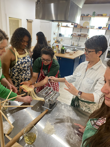 The relaxed atmosphere was conversational and interactive as we cooked, sipped wine, shared tasks, and lent input preparing our 4 recipes. The 3 hours flew by and I enjoyed our communal meal at the end with all 12 guests at the long dining table so very much! The conversation and laughter while meeting new people over good food and wine along with someone I love was a wonderful...