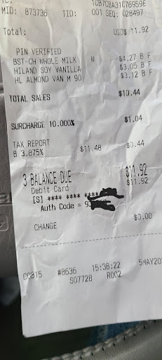 Read moreI finally noticed that surcharge that is more than taxes. This needs to stop just plan robbing. I like to know who approved this? They are getting over on their customers but it want long before they close too. And to be clear I said closed they should be reported and shut down for that mess. They never learn thieves pay for stealing in the long run you rob your customers you'll pay later by being shut down just like the others. You went in business can't afford it close bottom line. I will research if that's legal and I hope for their sake it's not illegal cause I want them out of business immediately. Pure Greed! Repent for stealing you should be ashamed of...