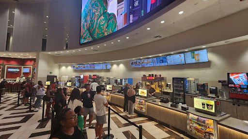 Read moreI've been to this theater a handful of times but this last Saturday was a totally different experience. We arrived 30 minutes prior to our 10:30pm showtime and wanted to grab some popcorn prior to entering the theater. On a Saturday night, there were only 2 registers open with a large line of individuals also wanting to purchase from the concession. While waiting in line I noticed a total of 6 staff members in the same area attempting to complete "closing duties" such as restock napkins at closed registers and other tasks without assisting the large line of customers that had to wait 20-30 minutes for a drink and popcorn. Upon completing our order, the Coke slushie was handed to us exploding from the top due to it being massively overfilled and spilling down the sides and all over the top of the cup/lid. Ironically enough, the napkins didn't even get refilled at the open register and there weren't enough napkins to even clean the mess that was handed to us. While trying to make our way to the theater, the floors were covered with trampled popcorn all over the carpet floor as if they had not been swept since the beginning of the day. Unsurprisingly, the floor looked the same on the way out after the movie.