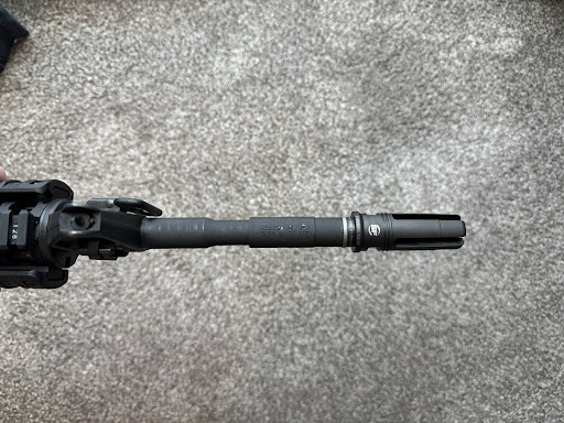 Note to gunsmith/manager: I’ve attached a picture of that same barrel assembly with 1 correct sized accu-washer (#18) installed and the FH properly indexed and torqued (23 ft/lbs, within Surefire’s 20-30 ft/lbs spec). I took that picture 10 mins after I got home. 10 mins was all it took to correct your mistake. Instead you lied, argued, belittled my experience, and banned me for answering the questions of one curious onlooker. I’ve been a customer since April 2022, I’ve spent thousands of dollars at your business since then, I just bought this Colt 14.5” LE6920SOCOM rifle from you on 9/26/24 for $1,492.77, but I guess I’m no longer...