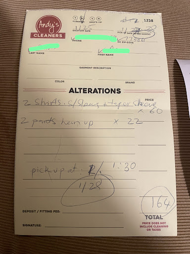 In summary, Andy's is a fantastic vendor for your dry cleaning and alteration needs. I highly recommend their services, you will...
