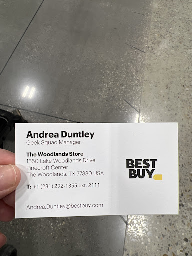 I recently had a problem with my laptop, and I took it to the Geek Squad Best Buy in The Woodlands for help. I was so impressed with the service I received! The agents were super professional and attentive, and they were able to fix my problem in less than 30 minutes!