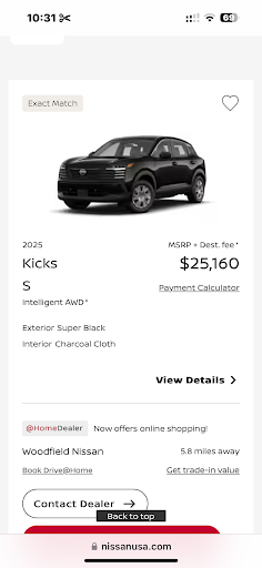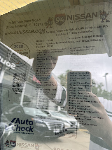 Ā Ā Ā Read moreI was over charged on a new nissan kicks 2025, 94 nissan charged me 28,895, after added 1k extra comes to 29,895. In total 37k plus with 7k down. Before i was promised a black friday sale plus a rebate management, the lady at the front desk, said i have to purchase 5 new cars to get rebate. All that was a lied. They lied pursue lured you in, then robbed you without a gun. I let my guard down. I let tina walk all on me and the whole staff. I had purchased a 2018 Altima cash for 17k out the door, i hate finances, but i wanted to build my credit, 94 Nissan of South Holland took advantage of me. No problem, thereās a god, any ones think theyāll get over me will pay a price. Thatās on god, i worked hella hard to earn every penny. Thatās was a terrible deal, to make with 94 Nissan. Not even a discount, they lied to me for black Friday sales. They didnāt have a black friday sales. That was just a front to make a sales. Anyway thank you, i love my car, that lady didnāt sale me no car, i buy what i like. Previously Michael was my salesperson. Nissan94 didnāt even cut me a slack, for a loyal returning costumer. Thatās really mess up, whoever reading this just aware of what are you doing, double check your deal, i wasnāt in my right state of mind, Iām a car salesman myself, from florida, i should know better, they really tricked me, this deal was straight garbage, no problem i will pray for nissan94, the ripping people off, they are straight scammers, they lied to you, they not honest, all they want was to makes a sale, screw you after. Now i have a 30k for 6 years debts on my end. I had the money to buy this car cash. They think they winning thereās a god, when you robbed god children, you pay double for your sin, terrible deal wrost i did in my whole life. Car doesnāt worth 29,895, itās 21k. Thereās a god amen, theyāll pay for their wrongs doing thatās a...