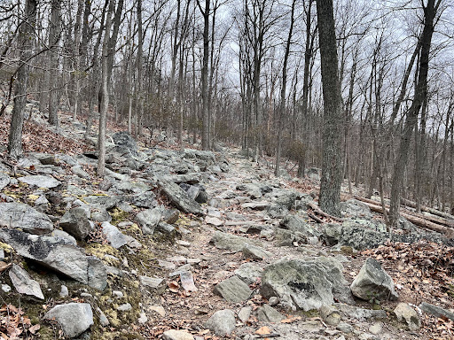 The effort:payoff ratio is extremely low. It's a small outcropping of rock at a low altitude (1400'ish, but the surrounding area isn't at 0', so you're looking at a few hundred feet vertical at most) overlooking gentle hills covered in trees after about a 30min hike through terrain I'd describe as "fist-sized loose rocks under leaves". Among the most obnoxious hiking surfaces I've encountered in the world -- which would be irrelevant if there was a payoff. There's also close to no solitude in this area, even early afternoon on a mid-week day. For me, solitude and a great view are the point of a hike. Best I can rate it is "better than no...
