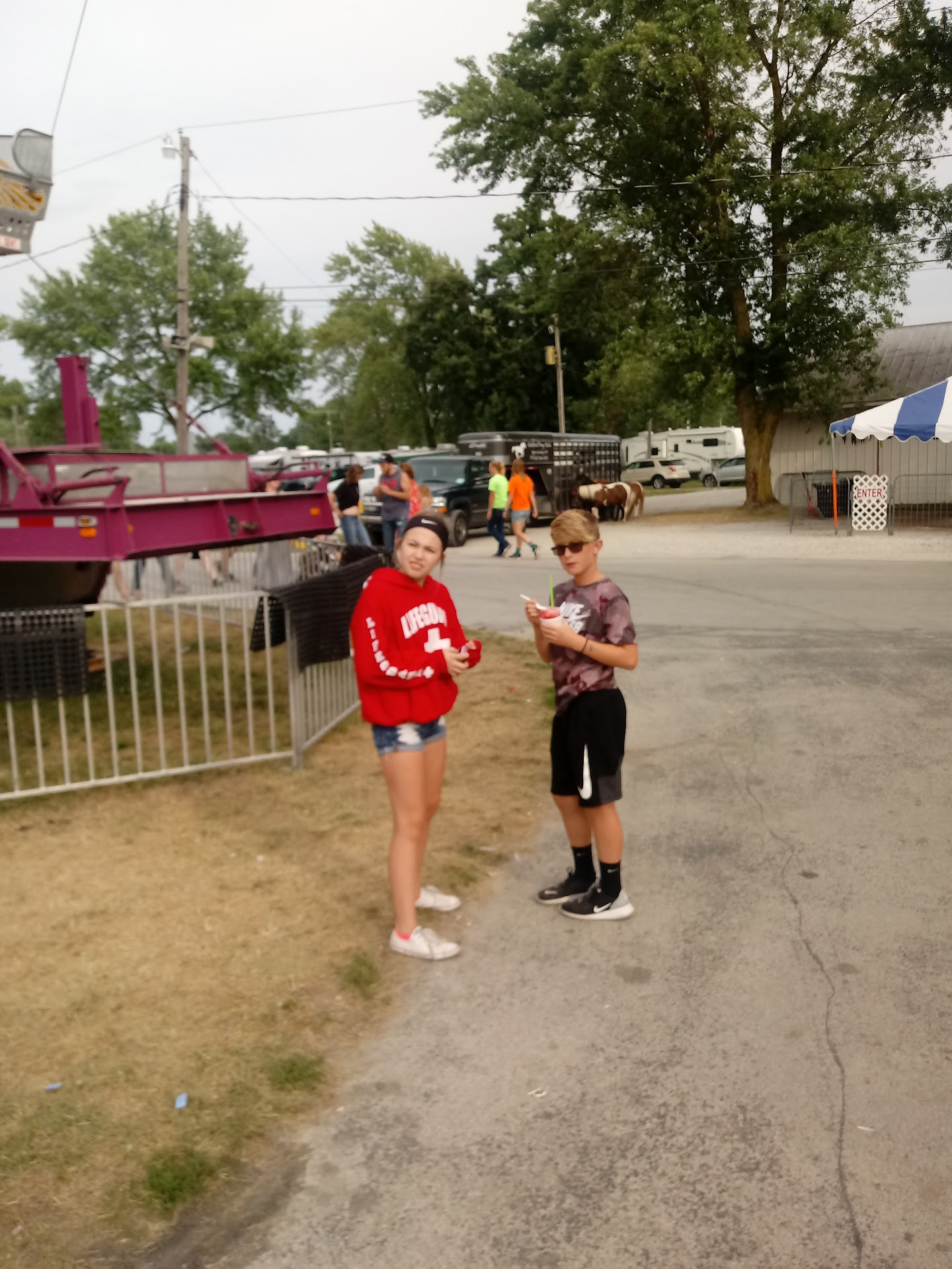 First time being here. Parking was in a field along the camper side of the fair, we were able to park near the gate entrance (small clean shed). They had a nice shelter house with benches and fair map right across the entrance with drivers of golf carts to take you pass the campers to the main fairgrounds. My son and I were the only ones that took him up and asked if we could have a tour since never been here. He gladly took us around the grounds and pointed out certain buildings and where to go. Even took us to see the old antique tractors and pointed out the new (new to them but still antique) old saw mill that was donated. We were visiting from Hardin County Horse royalty to tour the fair and see other projects, luckily we met the kind volunteer that took us to the building that we needed to go to! He also told us the spot we really needed to go for ice cream! (My son did get some of the great ice cream before we left!) When we entered the Jr Fair office we were greeted right away by a mom royalty volunteer and she was on the phone to have her daughter to another royalty to take us on a tour! We were welcomed so warmly. The Queen took my son on the fair tour while I waited near the ice cream building that had a covered porch with lots of seating and picnic tablets in front of the race track. They had a lot of food trucks to choose from and spread out so you didn’t have to walk far for food. The grounds were clean, easy to navigate with the pavement lanes that went through the fairgrounds. They also had clean inside bathrooms. After the tour my son and I walked around the animal barns, most were newer and even with the animals you didn’t smell them. The pins were clean and easy access to see the animals, except the dairy/beef barn. They had their showing going on so we didn’t want to be in the way. We stayed for the horse show and it was a delight to have seats with shade! Overall we would go back in the future. I loved that the kids/family was able to set up there campers near (with in reason) the animal barns where the kids had easy access to their animals. Looks like they were able to bring their own golf carts/utvs with them, which would be great to have (seen where they were parked not blocking/piled on top of each other or where people had to walk around. I Try not to post pictures of other people on here. The fair was busy even though it looks...