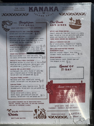 Read moreRead the reviews and had to try for myself. This truck is next to a couple other trucks in a strip mall parking lot. They had up front parking available and a clean and inviting outdoor seating area with lots of plants. We tried a combo plate with huli huli chicken and kalbi ribs. Wow! Looks amazing, yea?! The chicken is out of this world delicious! This ain't your average teri chicken, k. And the ribs... hoo brah - fall out your seat, eyes roll back kinda good. Top it off, they sprinkled a little furikake on the rice 😙. The potato mac salad could use a little more salt and pepper but that's easy to add to your own liking. Better than too much in my opinion. I'd definitely go back and try the rest of the menu. Maybe they'll have dessert for me to try 😜. Mahalo and...