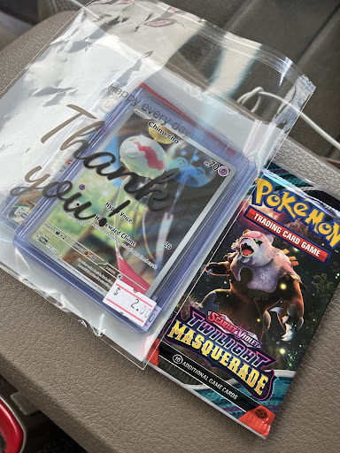 Read moreBest card shop in town!!! If I could give over a 5 star review I would. The owners are so sweet, they have such a good selection and great prices!! Binders, deck boxes, and cardboard boxes for different sizes/ amounts of cards!! Tournaments for multiple tcg! Just all around amazing. They really care about their customers, will be my go to from now on!! 💗 they even put your singles into a cute...
